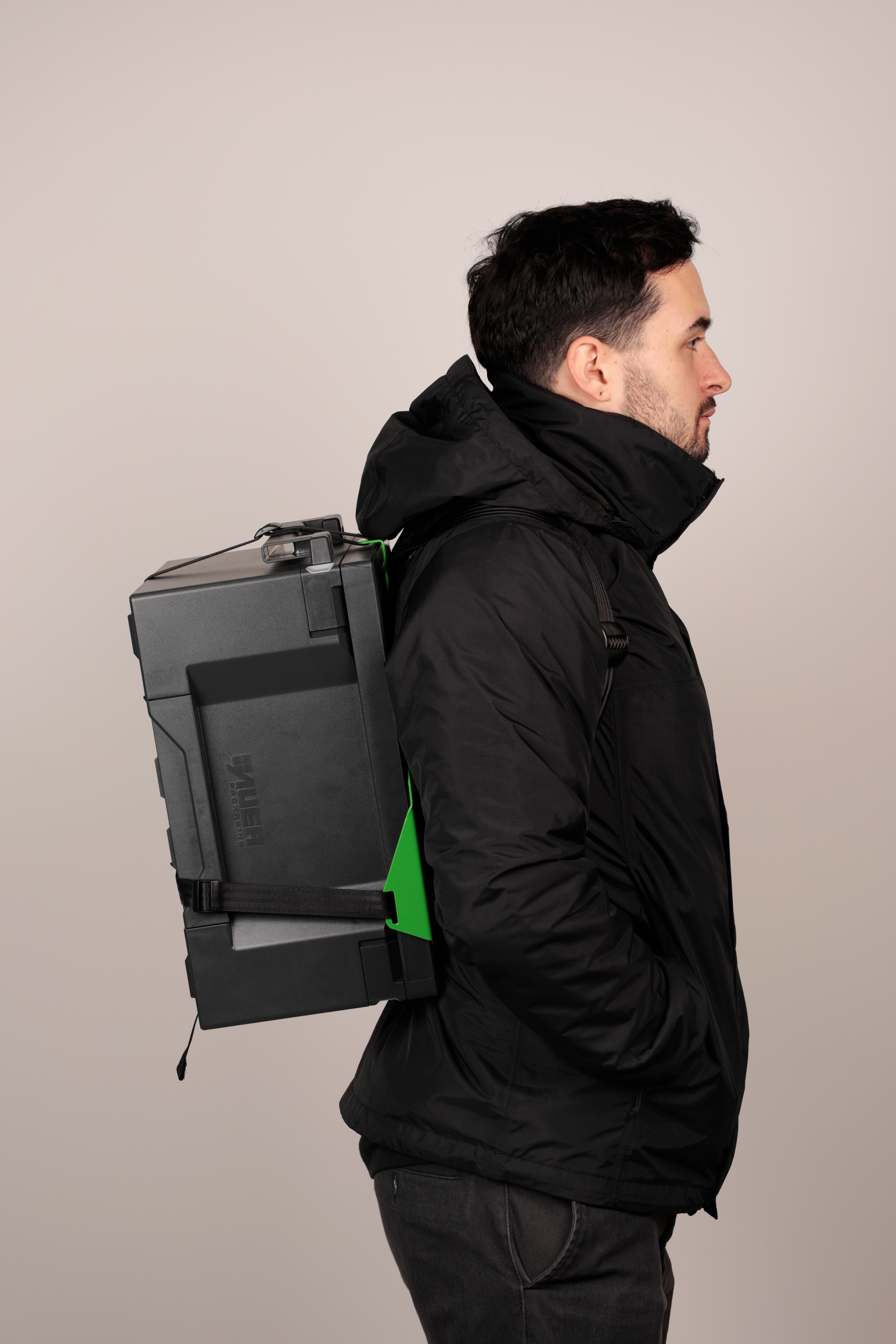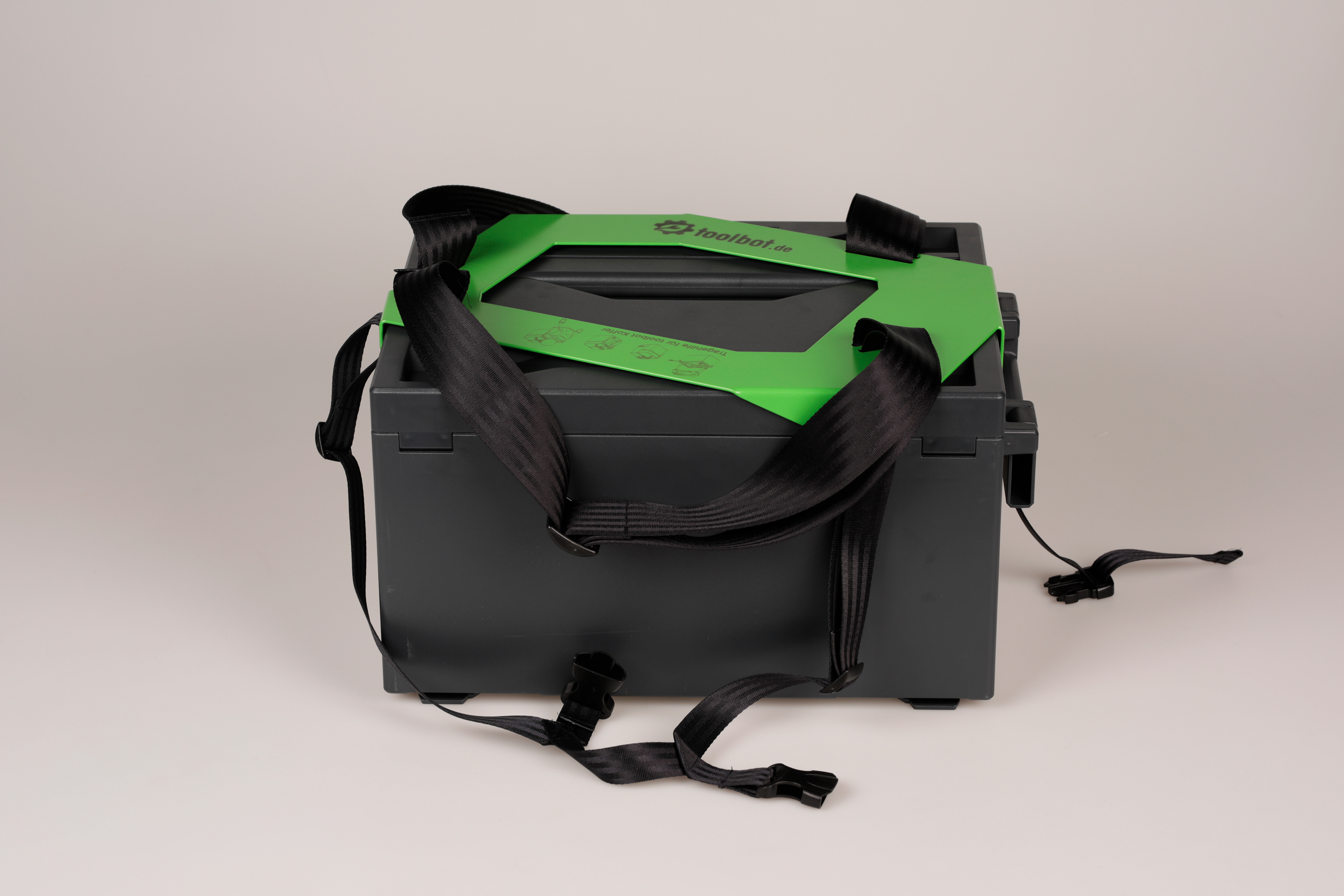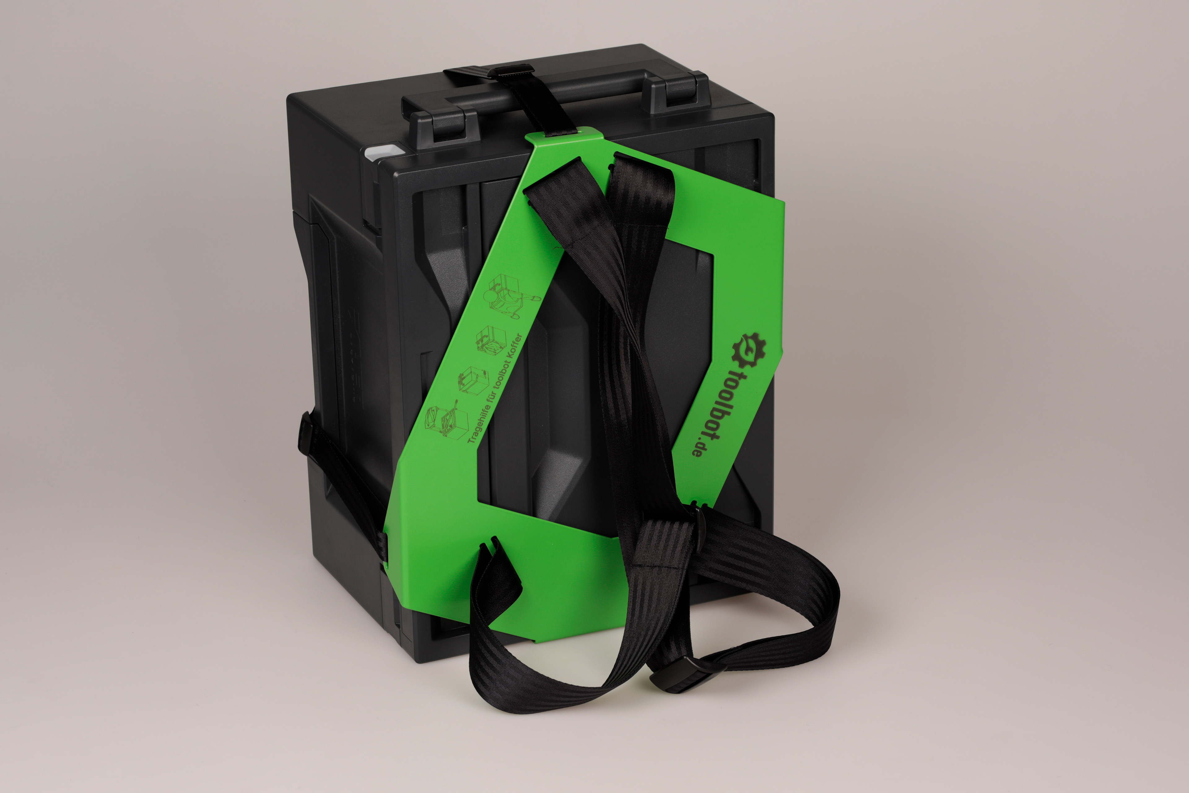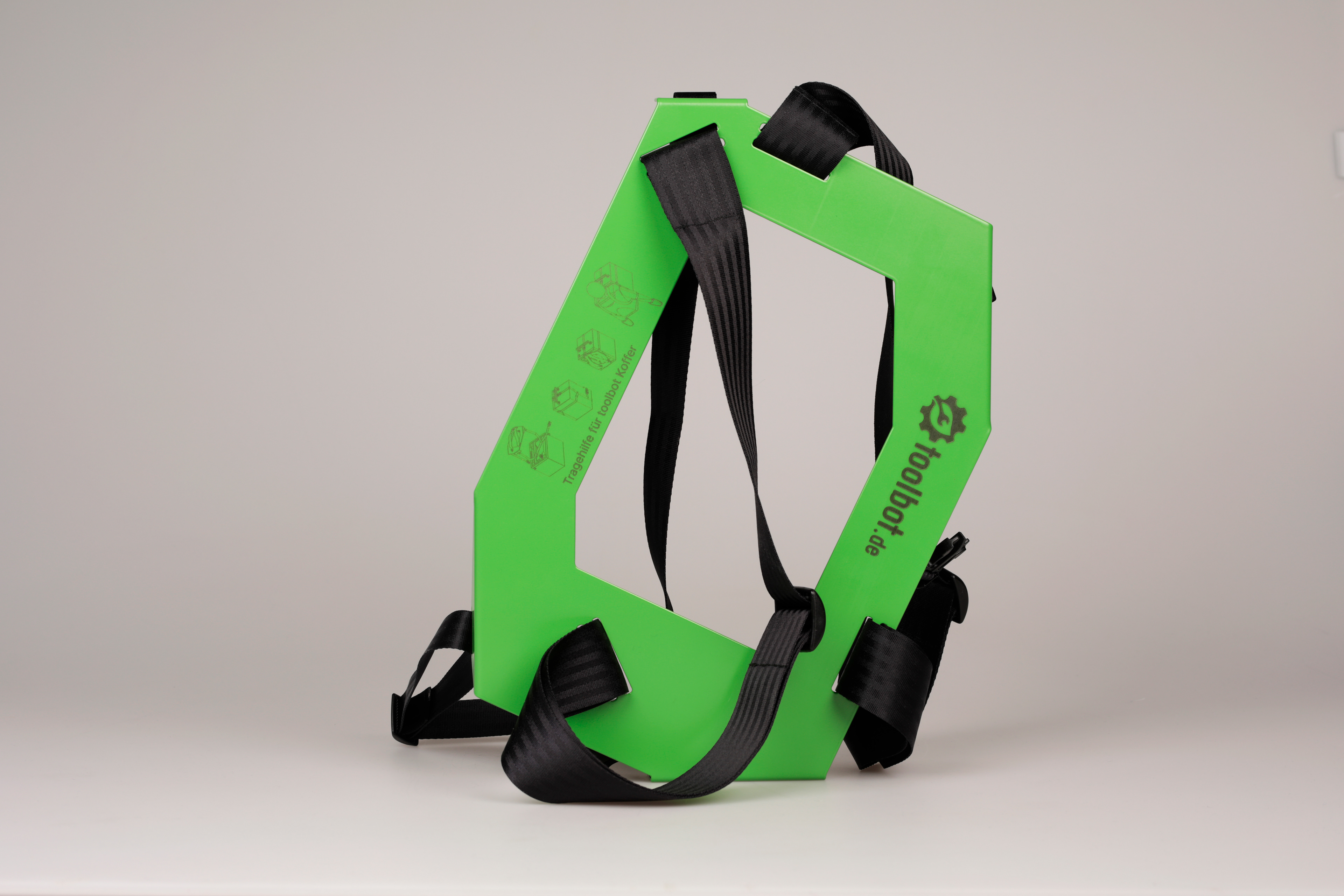 The design task for this project was to develop a mobile case carrying system for "Auer- System Koffer" for the company "toolbot". "toolbot" is an automated rental system for power tools with current locations in Berlin, Cottbus and Kassel. The product designed had to be as low-complexity as possible, universally applicable and inexpensive to manufacture. Consisting of a belt system and a folded sheet metal part, "Coat" represents my design on this topic. The add-on "encases" the tool case and inconspicuously creates a completely new usability. A rucksack for all case sizes from "Auer". The special shape of the add-on is created by twisting the inner dimensions of the case so that the carrying aid can be easily stowed in the case itself. "Coat" has been adopted by "toolbot" as a future mobility add-on and is already being produced in small series.